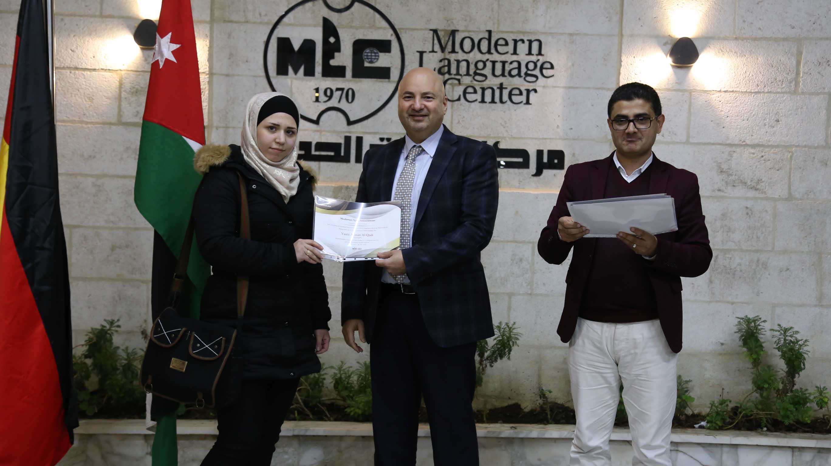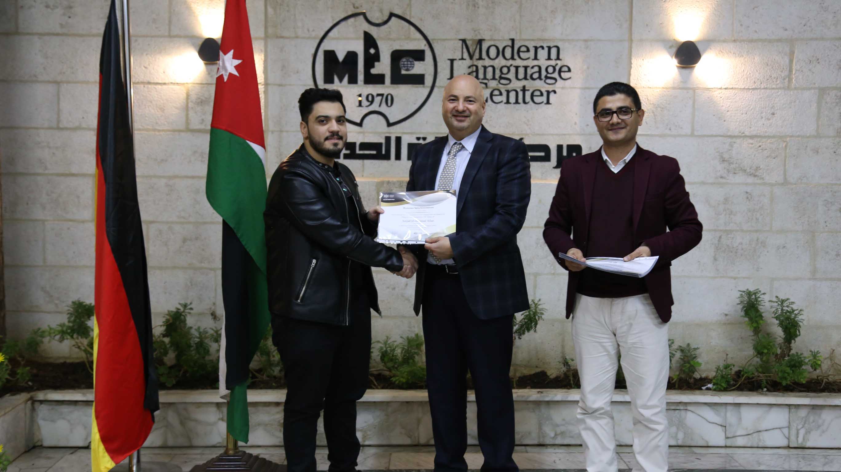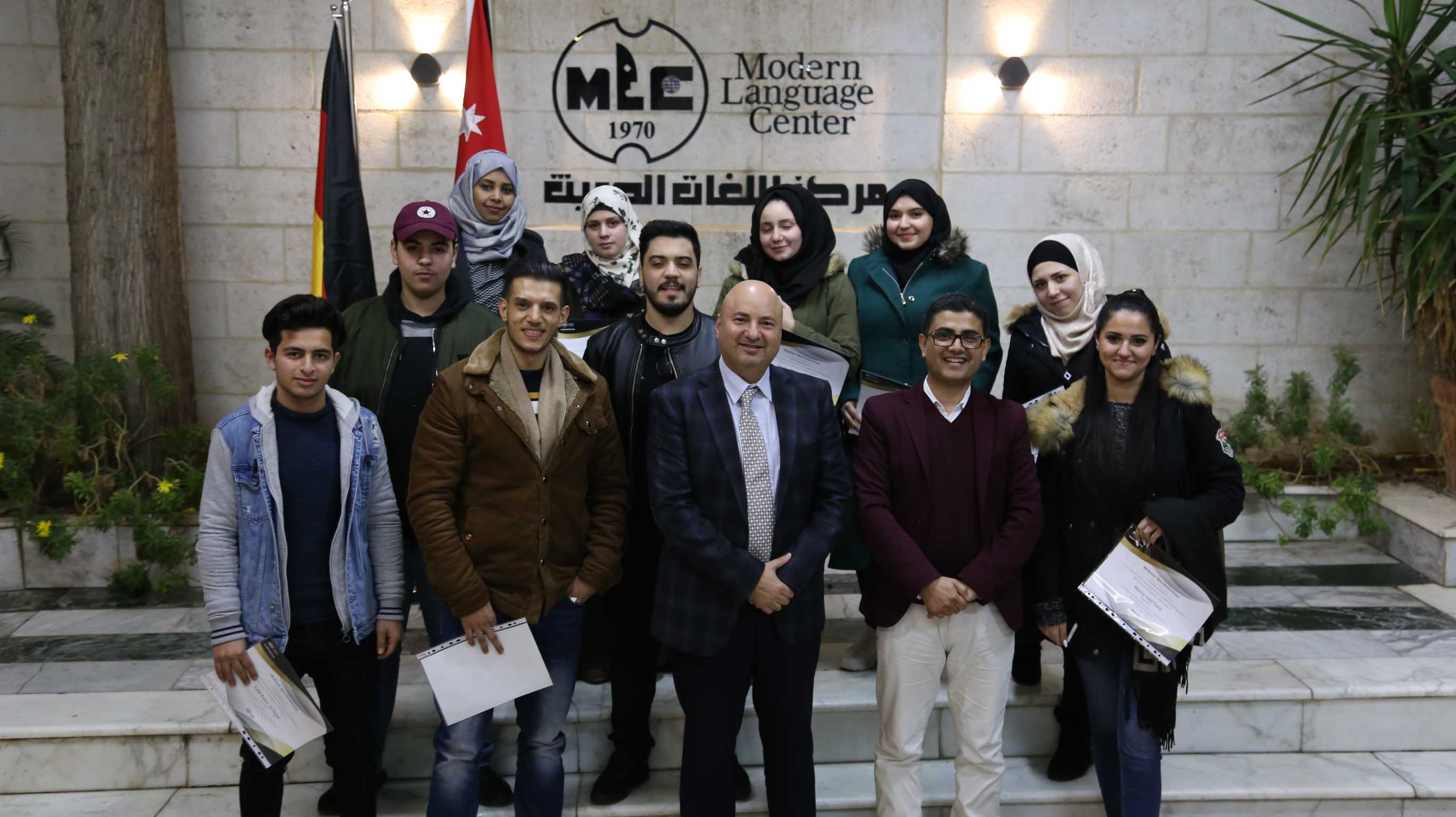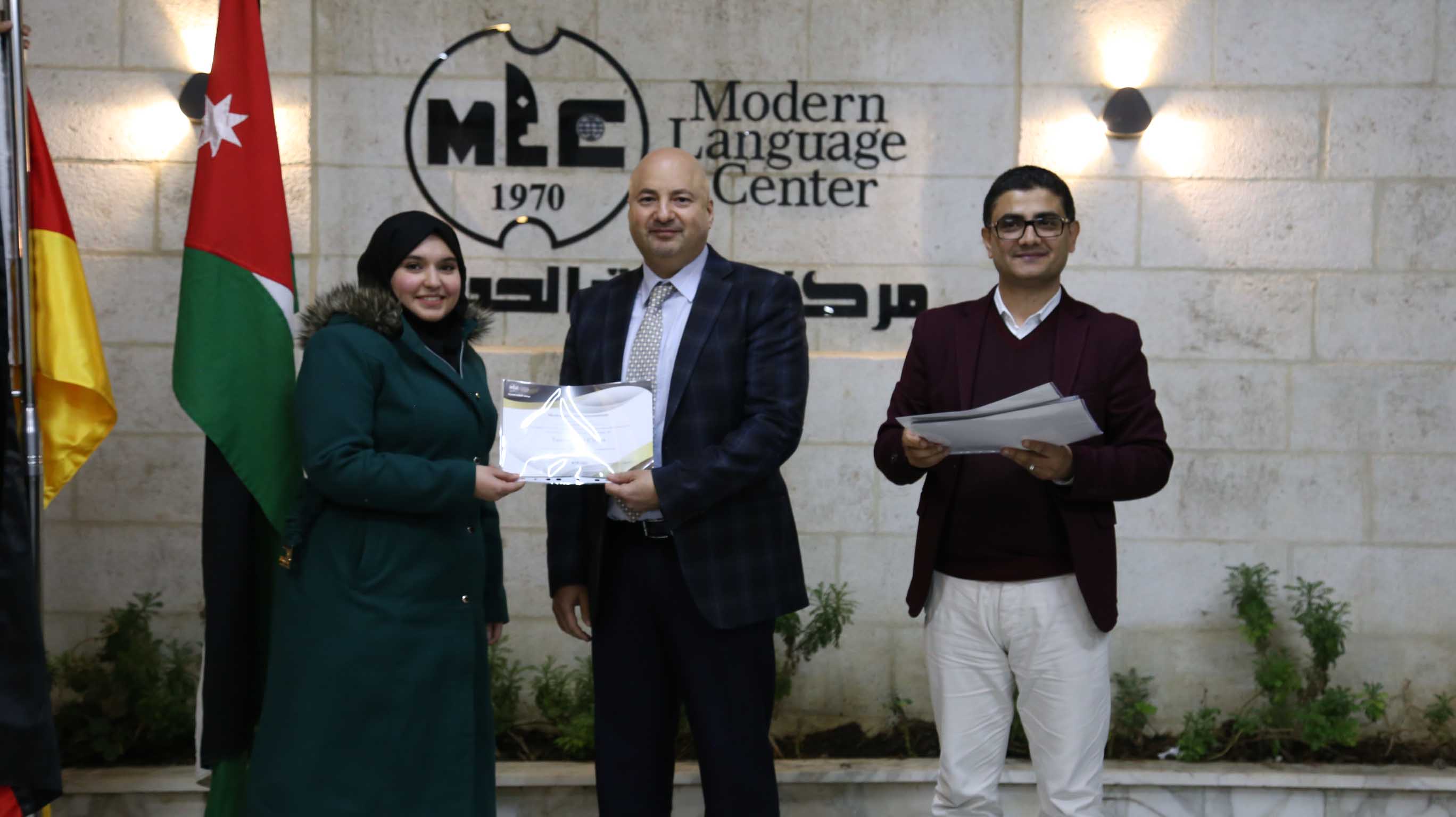 هذا وقد قام الأستاذ فارس عوض مدير مركز اللغات الحديث  بتسليم الشهادات على مستحقيها ضمن حفل في مقر المركزالكائن في جبل اللويبدة خلف البحث الجنائي