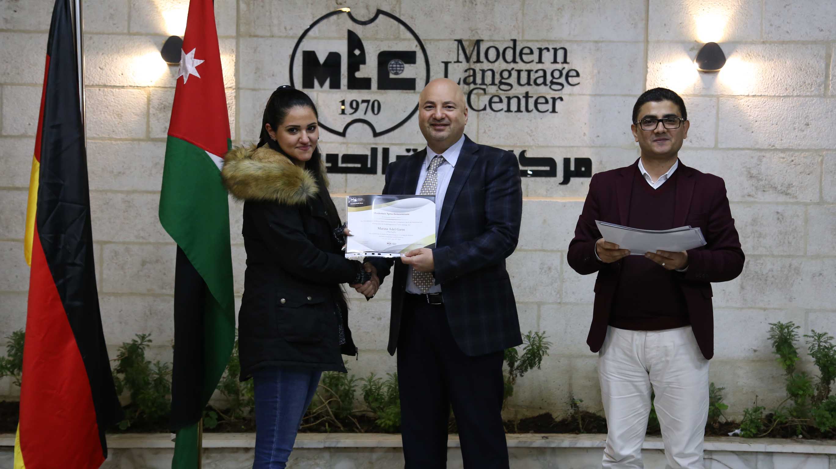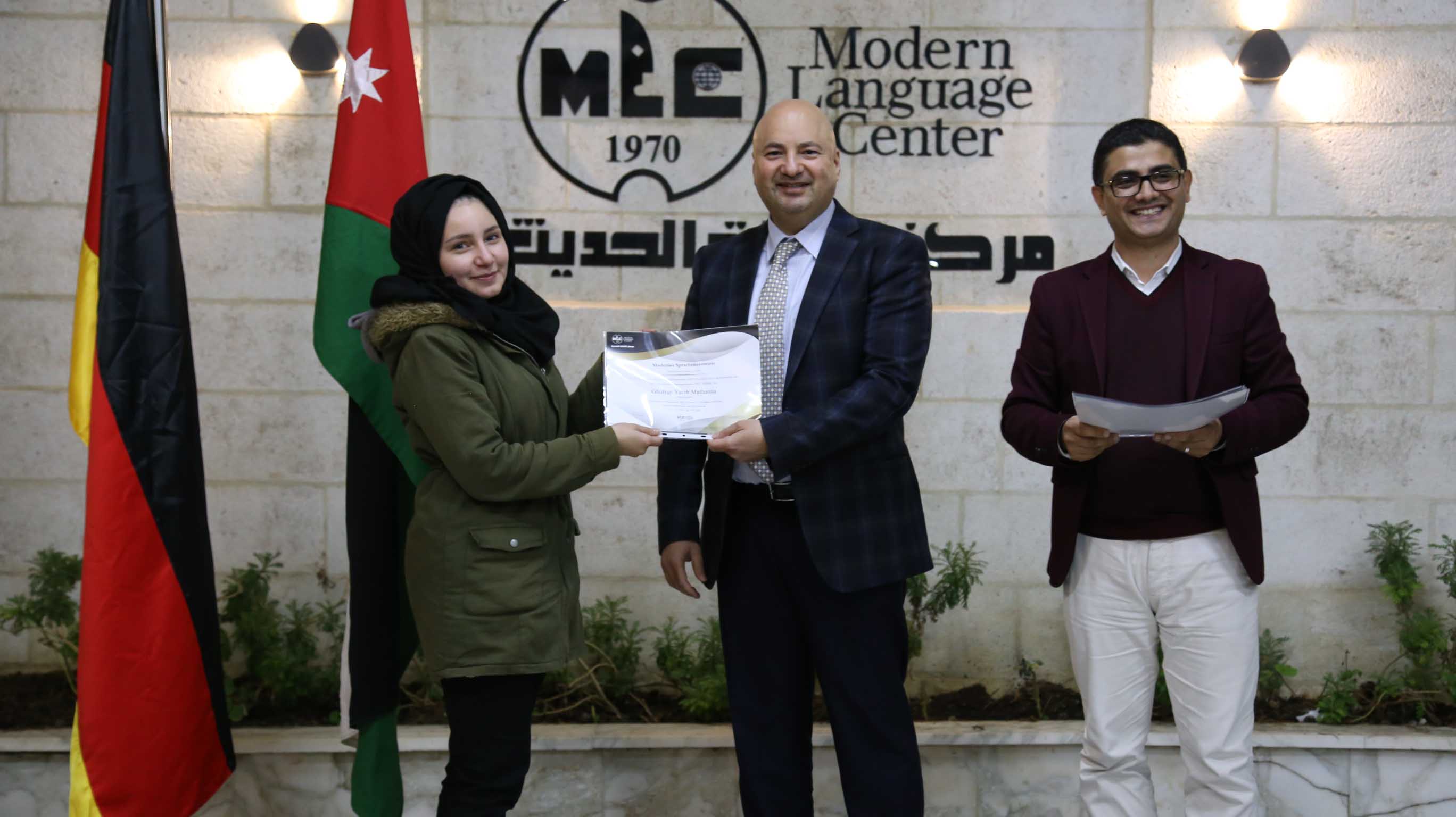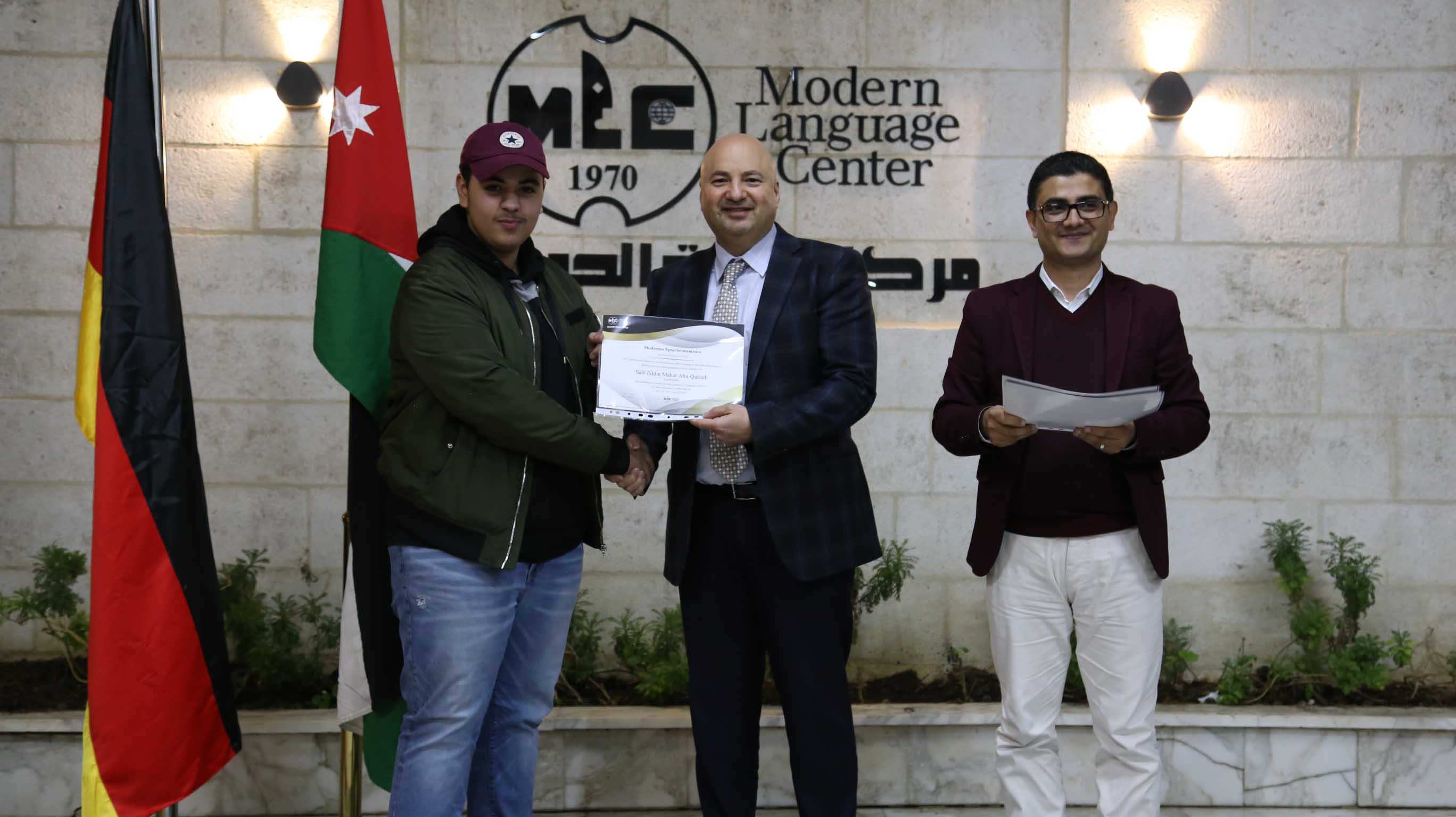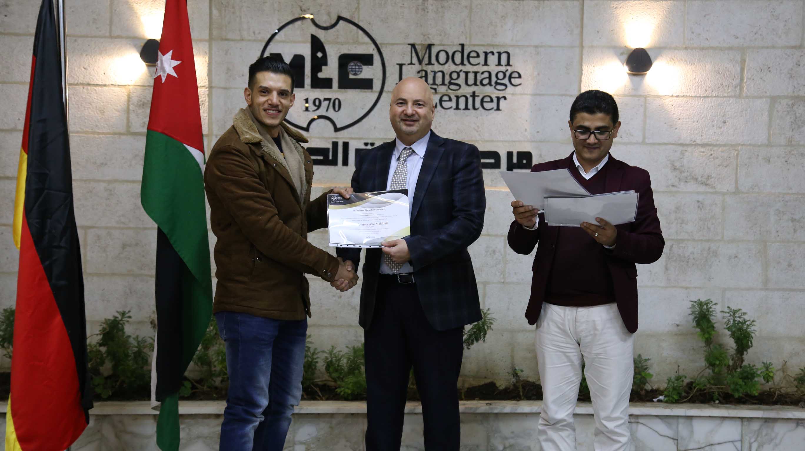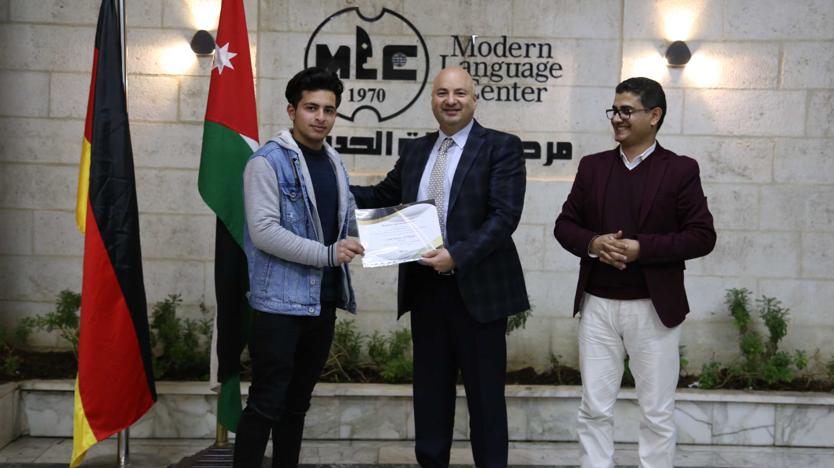 هذا وقد قام الأستاذ فارس عوض مدير مركز اللغات الحديث  بتسليم الشهادات على مستحقيها ضمن حفل في مقر المركزالكائن في جبل اللويبدة خلف البحث الجنائي