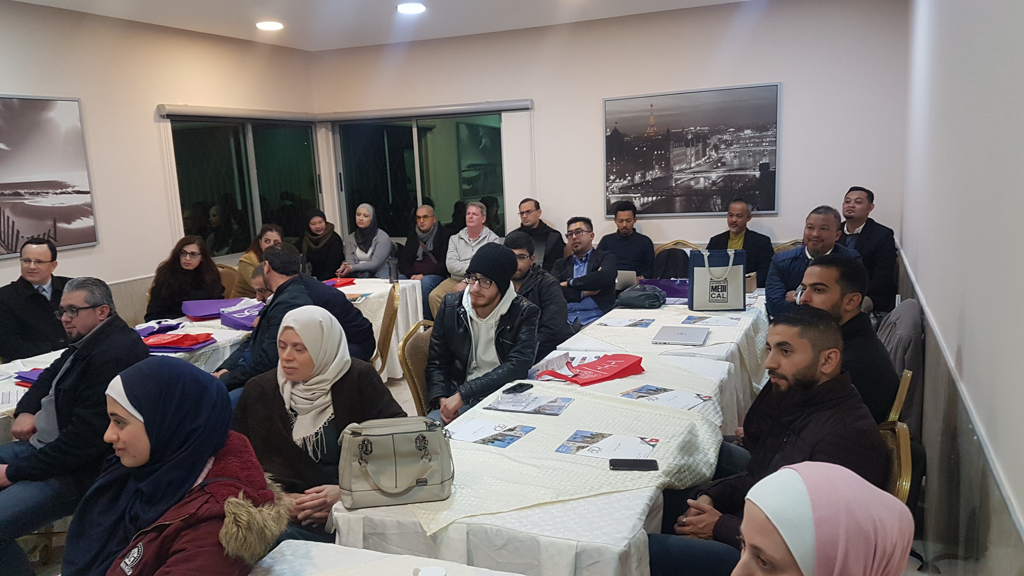 حيث استمع الحضور لشرح مفصل من اشهر الجامعات الماليزية الحكومية والخاصة ( جامعة ماليزيا الوطنية، جامعة العلوم الماليزية، جامعة الحسين في ماليزيا وجامعة سلطان زين العابدين).