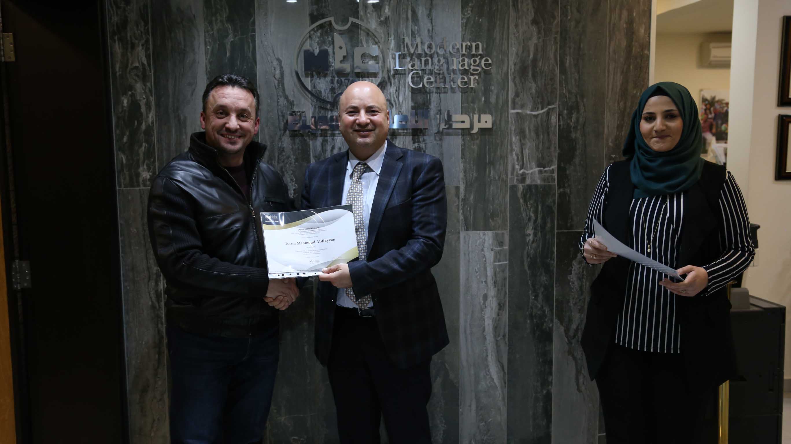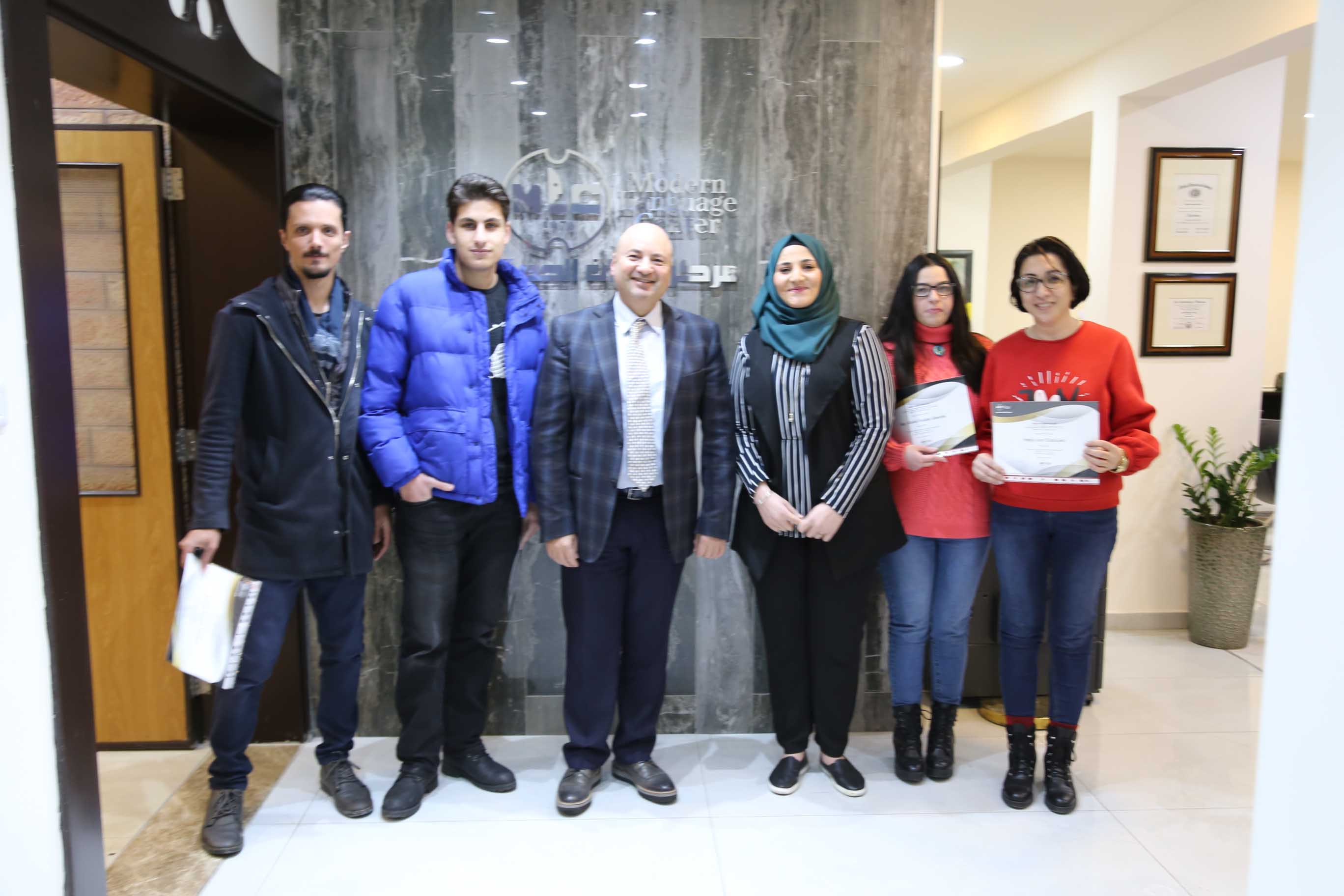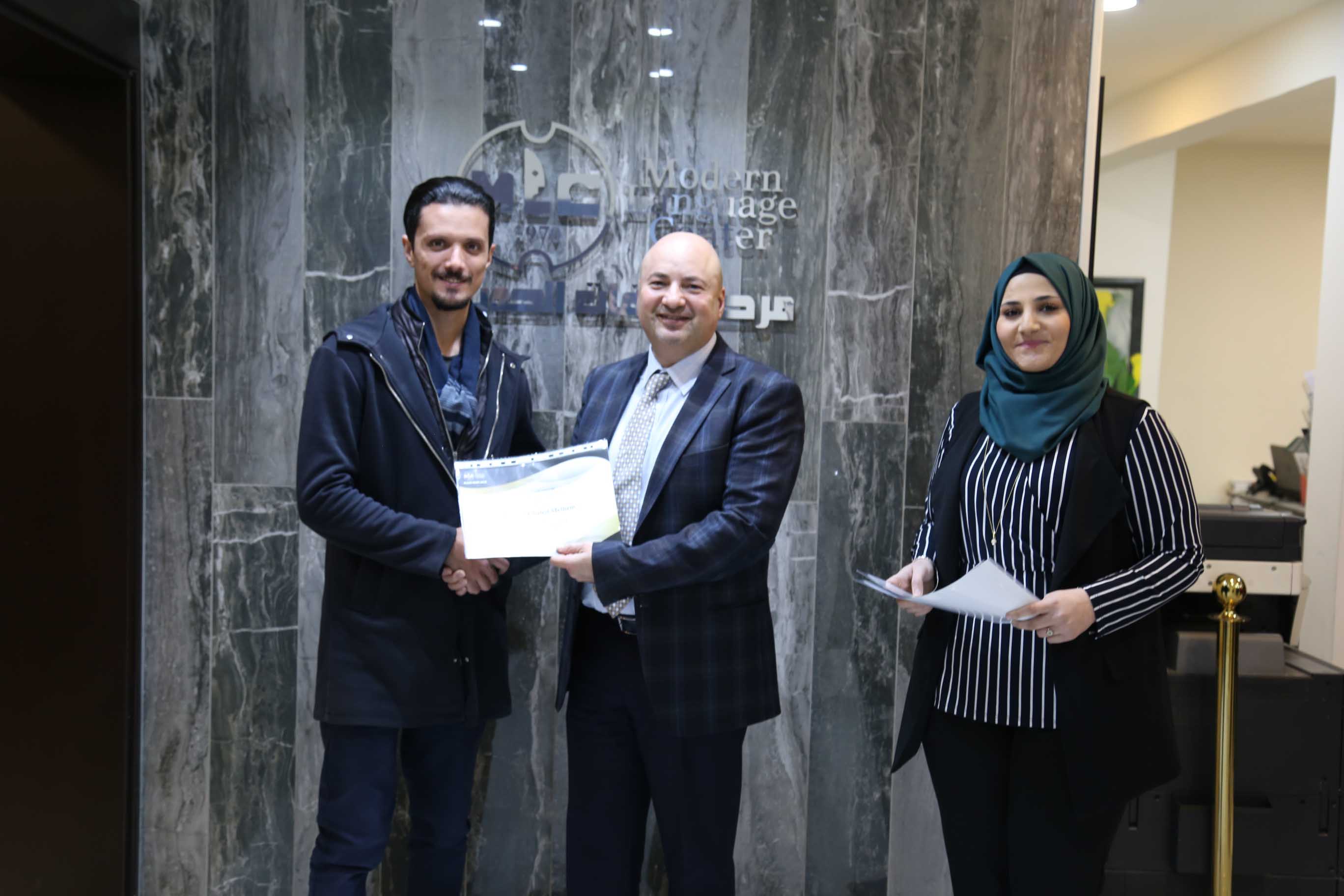 هذا وقد قام الأستاذ فارس عوض مدير مركز اللغات الحديث بتسليم الشهادات على مستحقيها ضمن حفل في مقر المركزالكائن في جبل اللويبدة خلف البحث الجنائي.