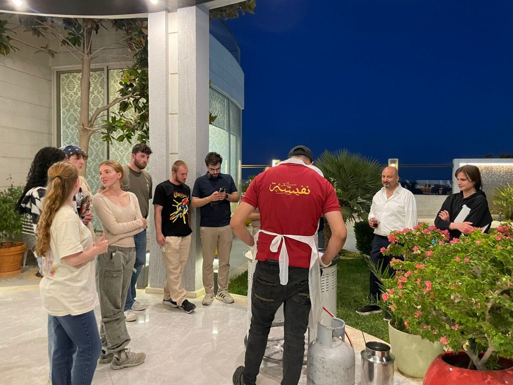 وفي كل دورة، يدعو الأستاذ فارس عوض – مدير مركز اللغات الحديث – جميع الطلاب لقضاء أمسية ساحرة في منزله المصمم على الطراز العربي الحديث، حيث يُقام عشاء خاص يُجسد معنى الكرم الأردني الحقيقي. خلال هذه الليلة، لا يتعلّم الطلاب فقط اللغة، بل يعيشونها، ويتعمقون في جمال العادات والتقاليد الأردنية التي تترك أثراً لا يُنسى في قلوبهم ❤️